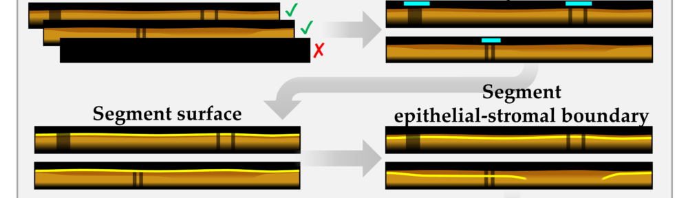 OCT produces a large amount of 3-dimensional data which is hard to quantify manually. This study presents a neural network pipeline to simplify OCT interpretation by providing information about epithelial depth and stratification through simple en face maps. The pipeline’s predictions demonstrate as-good-as or better agreement than inter-rater agreement, suggesting strong predictive power.